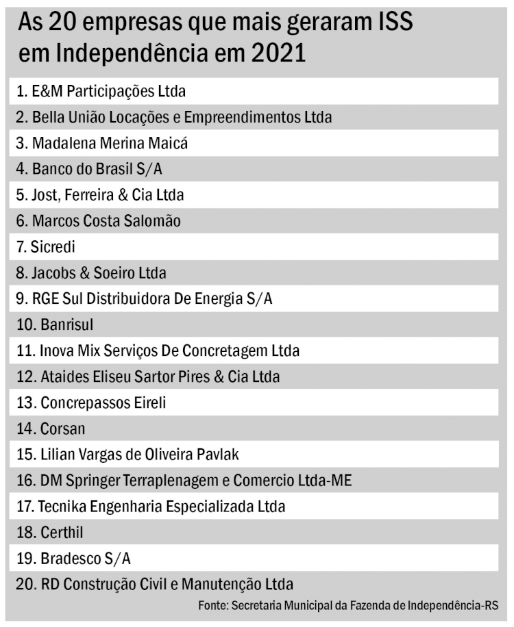 De acordo com Mucha, o ISS significa 1,54% do total arrecadado pelo município. “Em comparação com o IPTU municipal, significa que se arrecada mais com o ISS do que com o IPTU, em que foi arrecadado R$ 516.649,80 em 2021”.