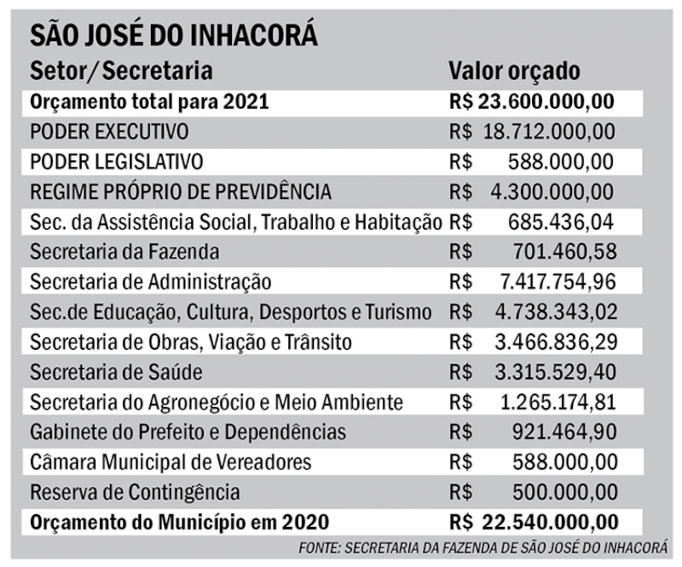 Em contrapartida, São José do Inhacorá passou de R$ 22.540 milhões para R$ 23.600 milhões, representando um acréscimo de R$ 1,060 milhão para investimentos.