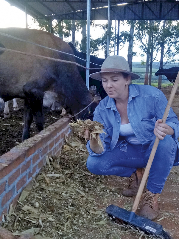 Leidiane Móri, 37 anos, de Colônia Medeiros, interior de Independência, está dando continuidade à propriedade rural porque se sente realizada na profissão que escolheu. Casada e mãe de dois filhos, é formada em Técnico em Gerência Empresarial, pela Setrem, e atualmente cursa o 5° semestre de Agronomia, pela Unopar, e o Curso de Auxiliar Veterinário de Grande Porte, pela Mais Futuro Central de Cursos, além de participar de movimentos em favor do Agro