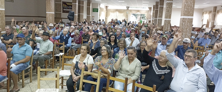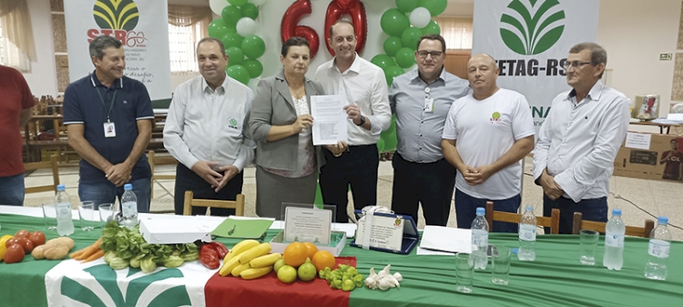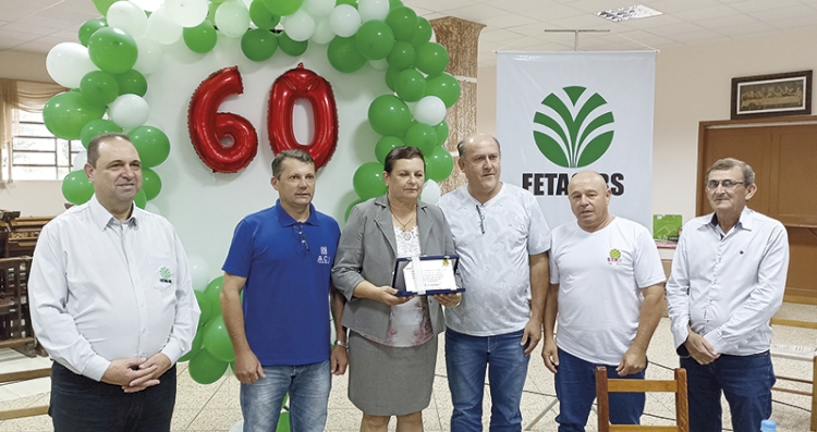 Na tarde de quarta-feira, o Sindicato dos Trabalhadores Rurais de Três de Maio e São José do Inhacorá reuniu seus associados, no salão católico de Três de Maio, para a assembleia geral e a comemoração dos 60 anos, completados no dia 24 de fevereiro. O presidente da Fetag, Carlos Joel da Silva, presente no evento, além de falar aos associados, entregou para a presidente do STR, Anisia Trevisan, uma placa da Federação alusiva ao aniversário do Sindicato