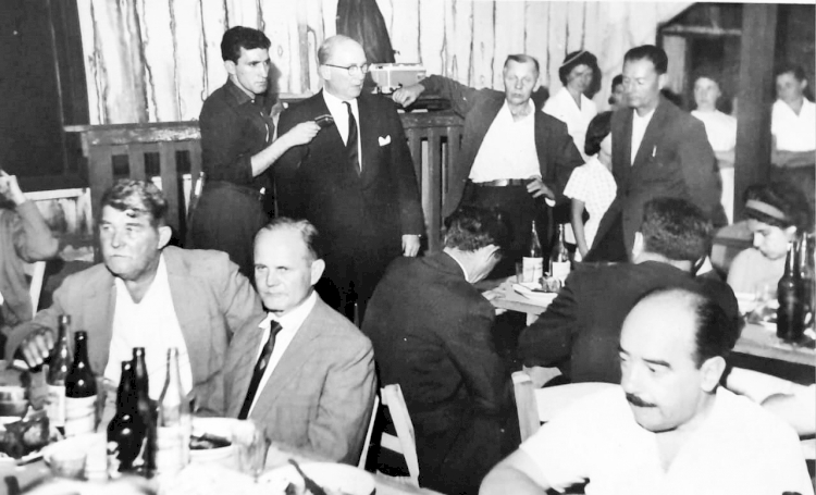 Baile de inauguração da rede elétrica de Quaraim, em 1962. Na foto ao fundo, o prefeito Germano Dockhorn fazendo seu pronunciamento. Em primeiro plano, sentado à mesa ao centro, Ceslau Sawitzki meses antes de ser eleito terceiro prefeito de Três de Maio