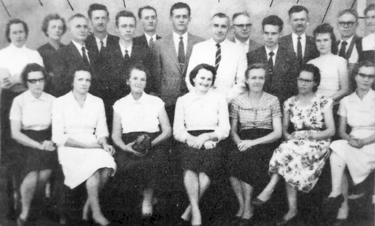 Coral com seus componentes, no ano de 1959. Em pé: Elfrieda Gass, Elli Greiwe, Eugênio Schaeffer, Alfredo Ziemann, Benno Tesch, Armando Scäffer, Erwino E. Mensch (regente), Willy Beckert, Emilio H. Esch, Arno Winter, Florêncio Berger, Erica Lauer, Ernesto Winter e Erica Schmidt. Sentadas: Leda Mensch, Erica Rieger, Frida Gottwald, Elsa Schmidt, Erna Pretzel, Anita Ziemann e Maria Schäffer