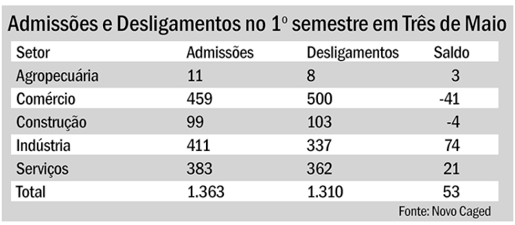 Três de Maio termina semestre com saldo positivo de empregos